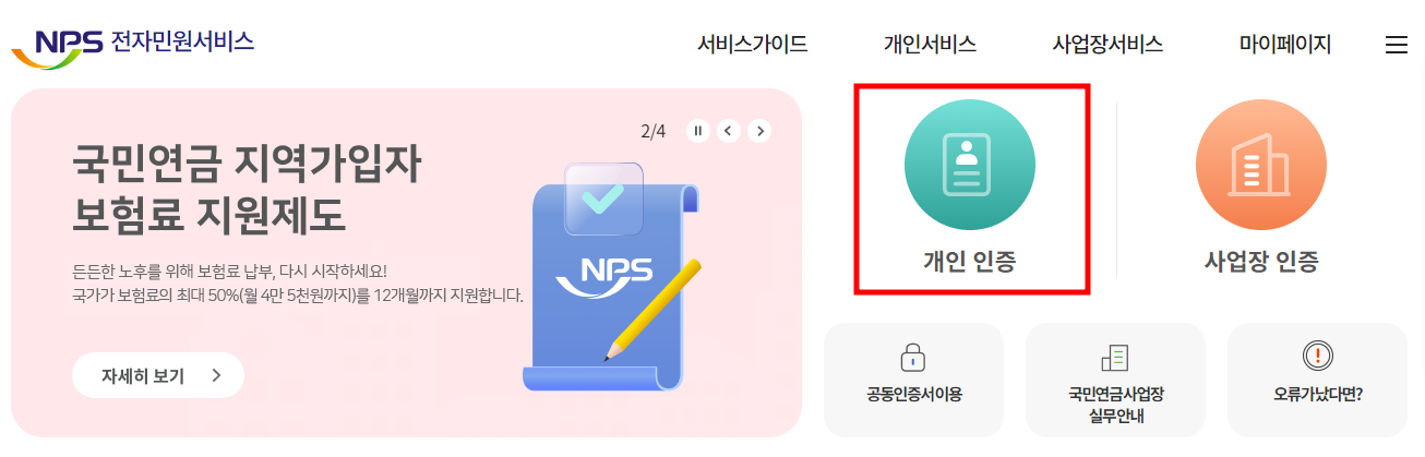 네이버에서 "국민연금공단" 검색 후 사이트에 접속해 주세요.