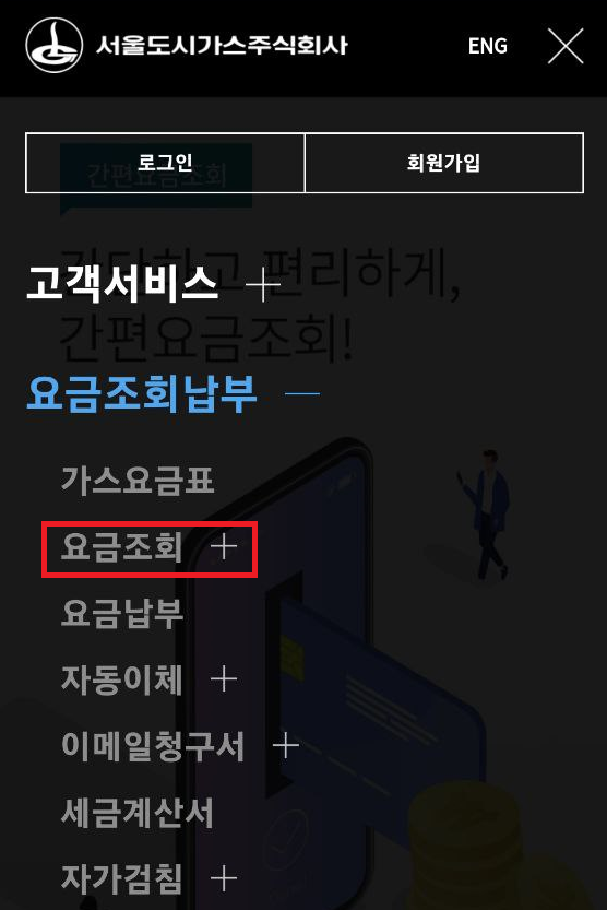 조회하는 방법은 비슷합니다. 지금은 가장 많이 사용하는 "서울도시가스"로 예를 들어 보겠습니다.
