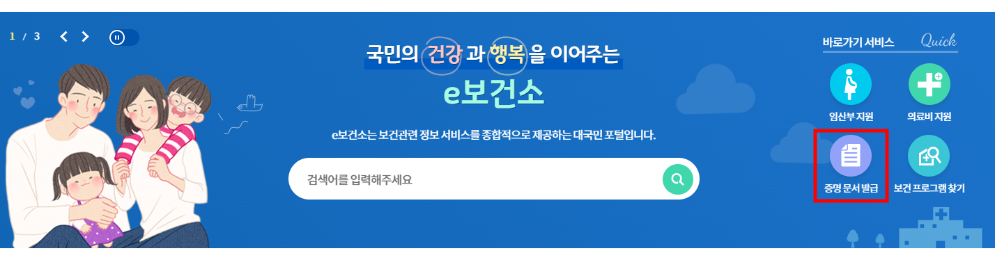 예방접종증명서, 진료비 납입 증명서 등의 경우에도 조회가 가능하다.