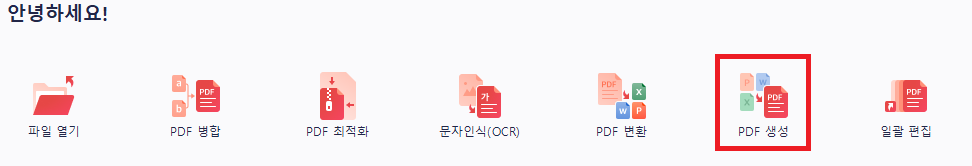 할 텐데요 지금은 PDF 파일로 변환을 해보도록 합니다. 사진과 같이 "PDF 생성"을 클릭합니다.